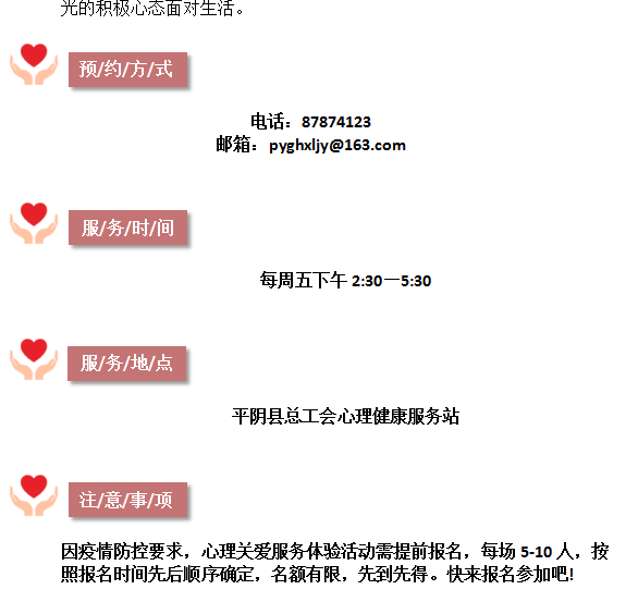 【平阴】心理关爱服务体验活动邀请您来参加啦