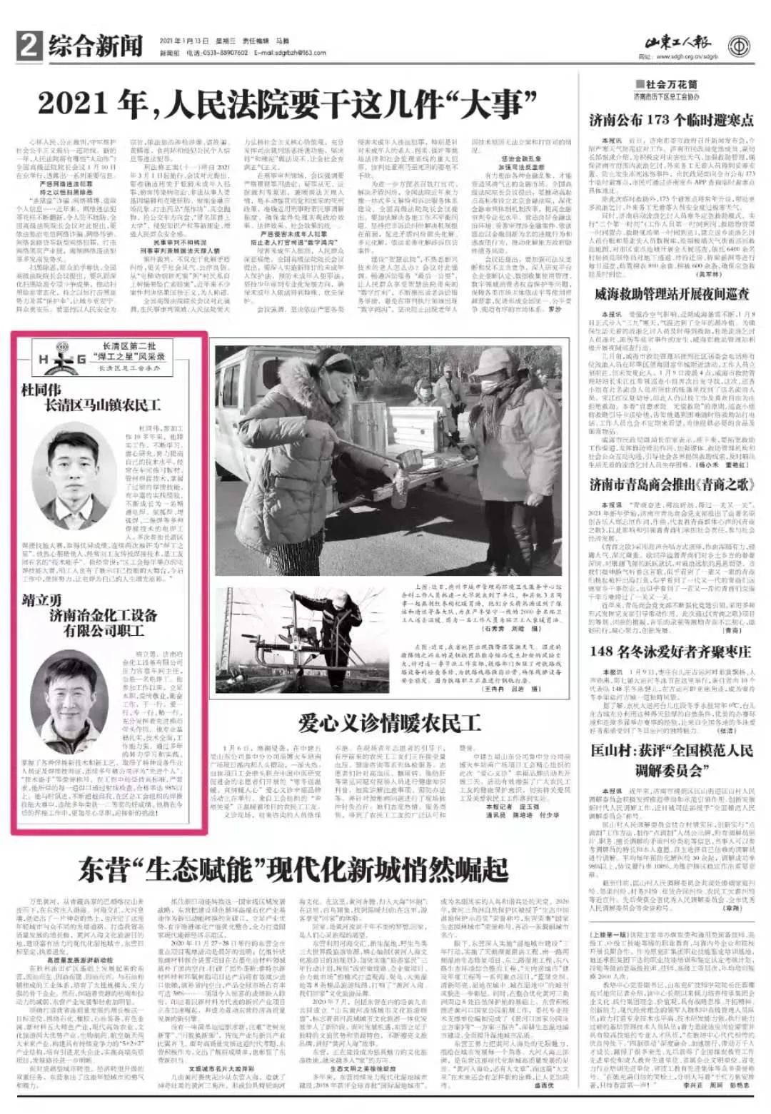 【长清】《山东工人报》陆续刊登:济南市长清区第二批“焊工之星”的事迹
