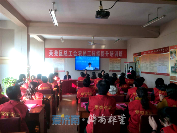 10月17日上午,莱芜区总工会农民工技能提升培训班在爱家家政二楼会议室举行。