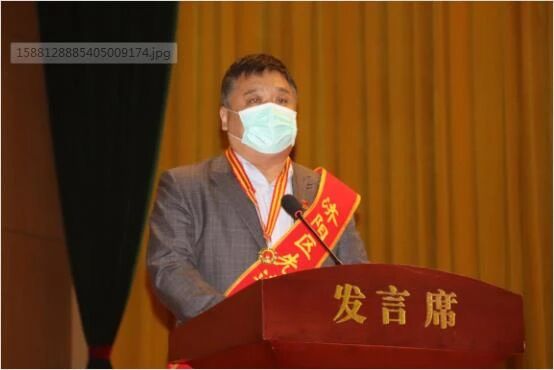 会上,先进工作者获得者、济阳一中校长韩清林作为受表彰代表发言。
